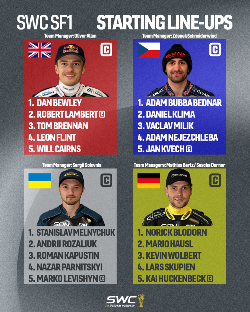 The starting line-ups for 2026 WWK Schwaiger & Partner FIM Speedway World Cup Semi-Final 1 – Landshut this Friday have been revealed.